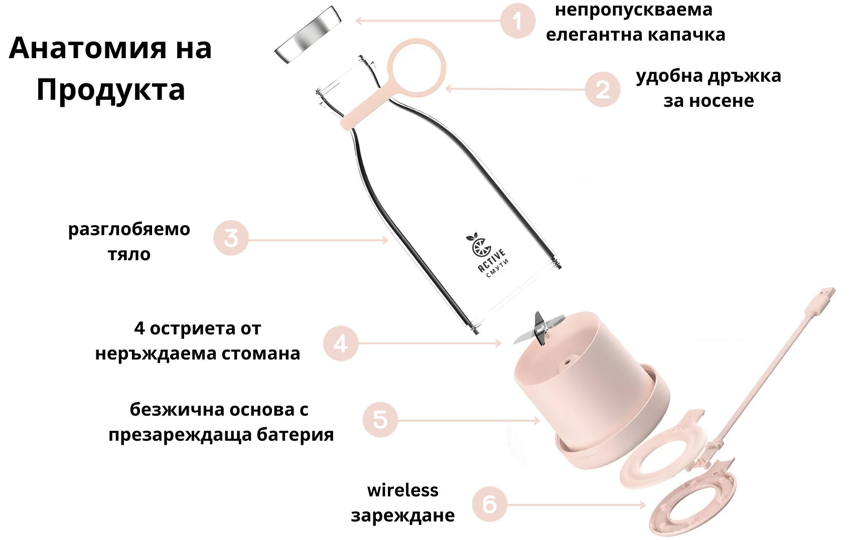⛔ НЕ поставяйте нищо газирано в ACTIVE СМУТИ. Това може да доведе до натрупване на налягане в тялото и е възможно нараняване или повреда на блендера (веднага или с течение на времето).
